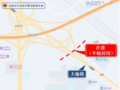 根据太原武宿国际机场扩建空港配套工程(经北街)施工的需要,2023年2月12日至2023年3月15日(夜间24:00至次日晨5:00封闭施工,白天恢复正常通行)将占用太榆路进行上跨箱梁吊装施工,为确保道路交通安全,该路段施工采取东西半幅分阶段、分时段交替封闭方式实施。