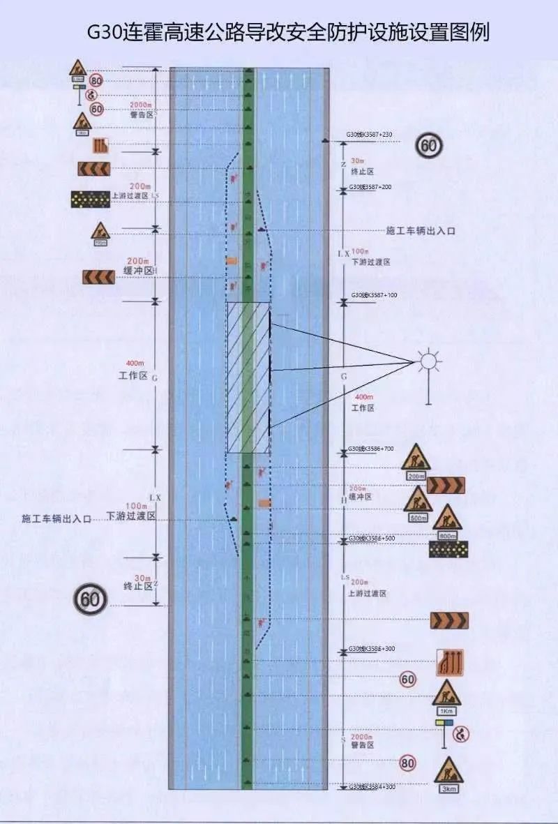 为确保乌鲁木齐绕城高速(西线)工程项目跨G30连霍高速高架桥及互通内路基、涵洞工程的顺利实施,保障道路安全通畅,根据《中华人民共和国道路交通安全法》有关规定,现对G30连霍高速南线(新高速)乌拉泊西互通路段双向实施占道施工(K3586km+300m至K3587km+230m),具体如下:
