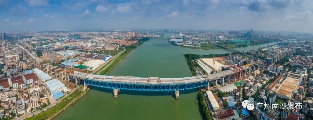 公铁合建段为公铁两用桥,上层为高速公路,下层为南沙港铁路,其中跨越鸡鸦河水道采用平行弦连续钢桁梁结构,主跨175米。