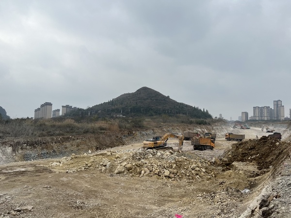 目前,项目土石方量比较大,达到64万平方米,施工方采取了控制性爆破、二氧化碳爆破、机械凿石三种方式来施工,施工达55万平方米左右,预计在年前把这条路完全贯通。